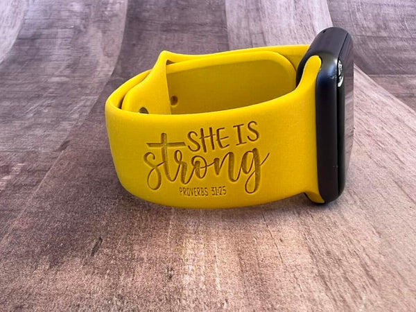 Engraved Silicone Apple Watch Band. Available in multiple color options and in 38/40mm or 42/44mm.