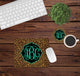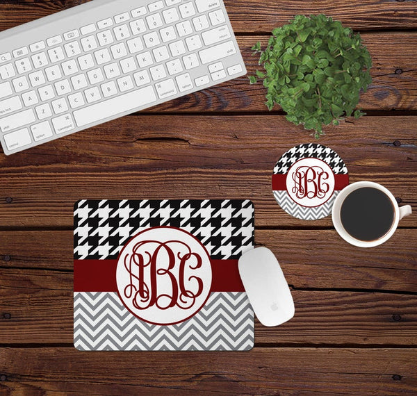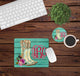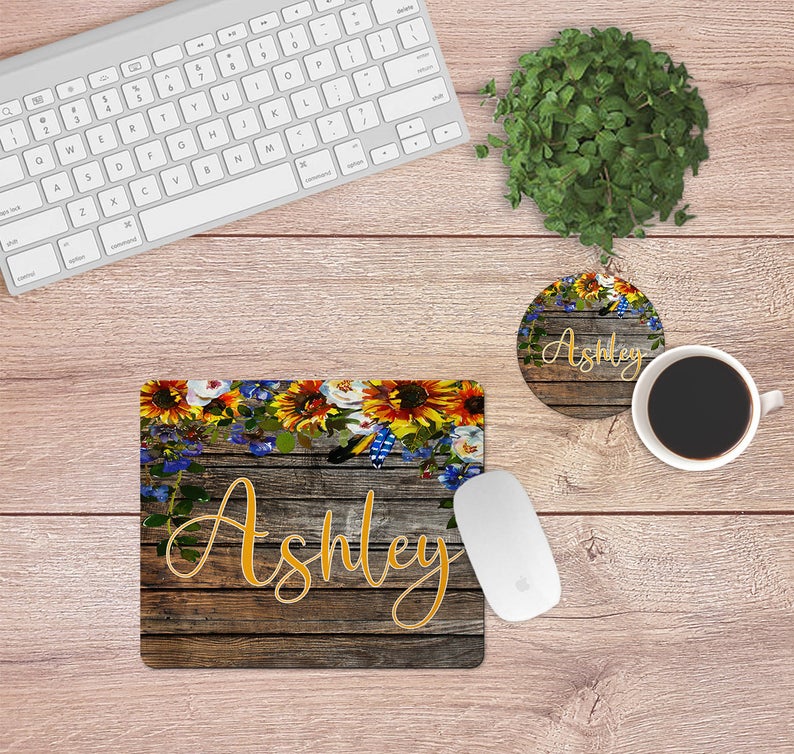 Includes one mouse pad- either round or square- and one home coaster with personalization.