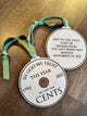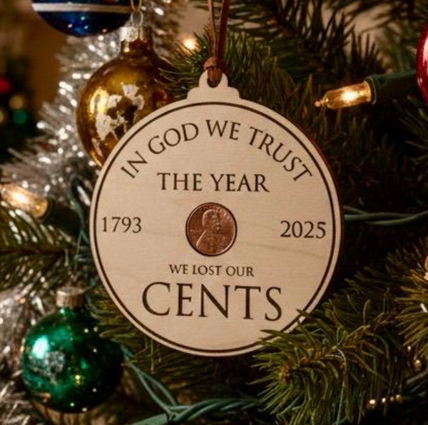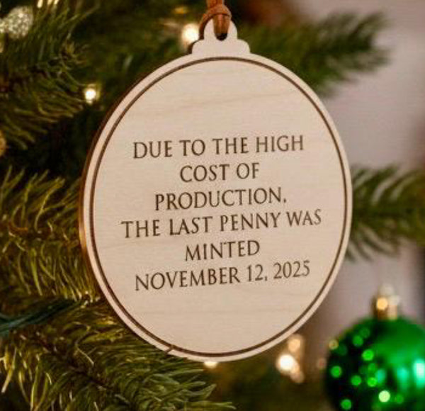 These wood ornaments are front and back and will include a penny and the ribbon. Not a 2025 penny because I can't find any (sorry). If you want to add your own 2025 penny, please let me know not to glue one on.