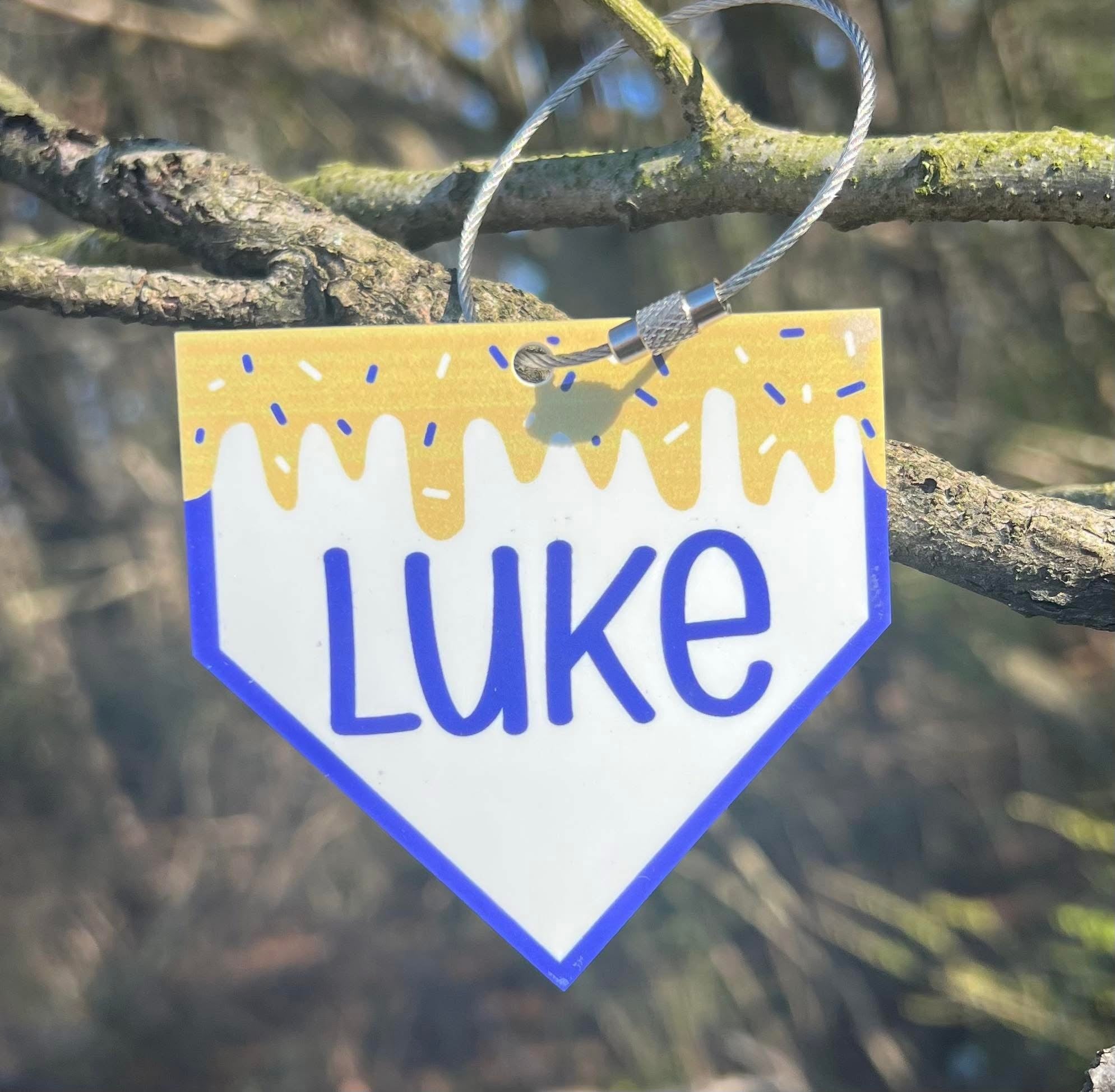 Make your gear stand out with our keychain/bag tag! This 3-1/2" round acrylic tag is perfect for attaching to your bag, making it easy to identify and keeping your equipment organized. Show off your love for sports while adding a unique touch to your gear.