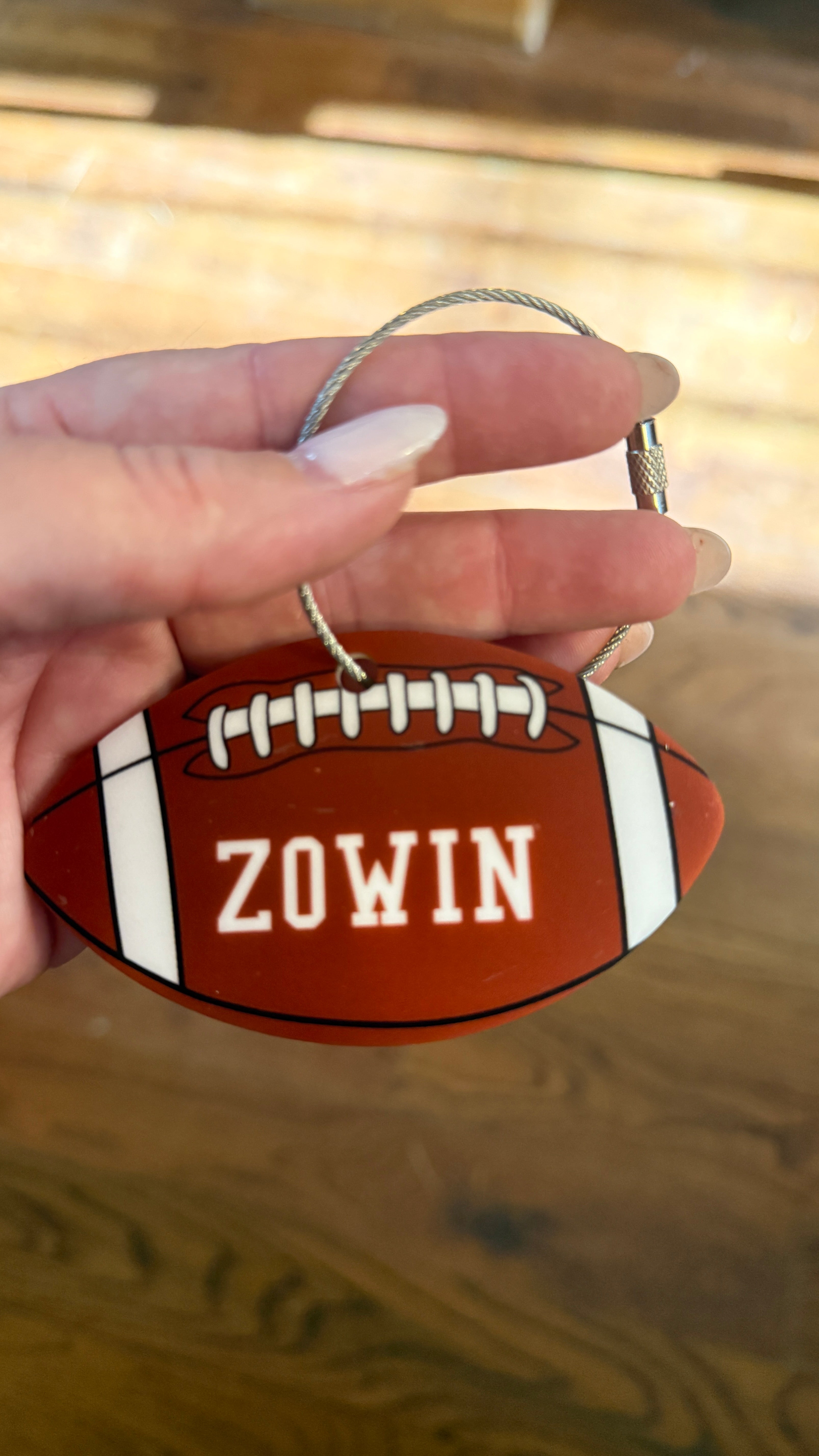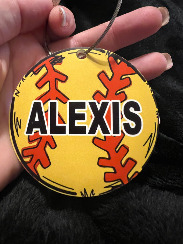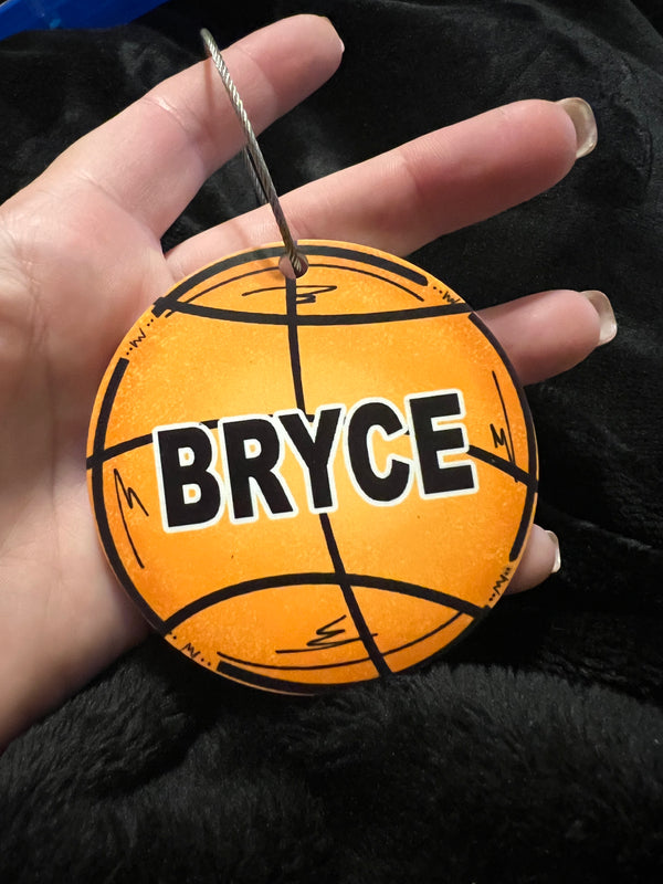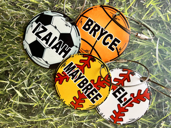 Make your gear stand out with our keychain/bag tag! This 3-1/2" round acrylic tag is perfect for attaching to your bag, making it easy to identify and keeping your equipment organized. Show off your love for sports while adding a unique touch to your gear.