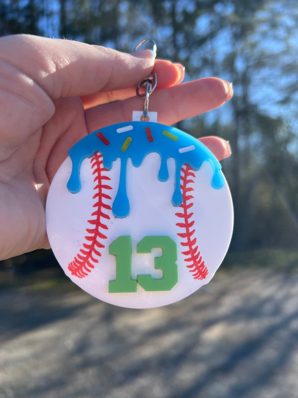 Make your gear stand out with our keychain/bag tag! This 3-1/2" round acrylic tag is perfect for attaching to your bag, making it easy to identify and keeping your equipment organized. Show off your love for sports while adding a unique touch to your gear.