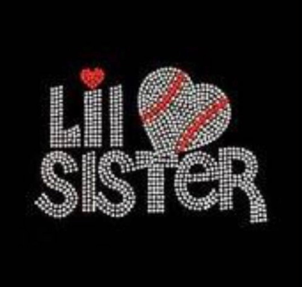 Baseball Lil Sister 7.55"x5.07" Rhinestone Iron On Transfer