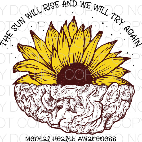 The sun will rise and we will try again mental health awareness Transfer Sheet