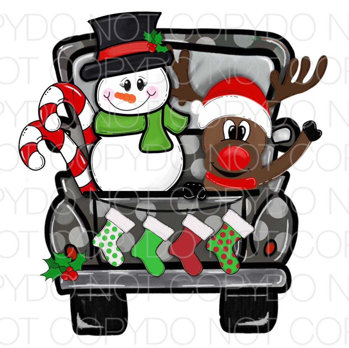 Black Dot Christmas Truck with Snowman and Reindeer Transfer Sheet