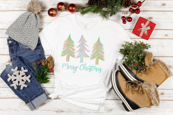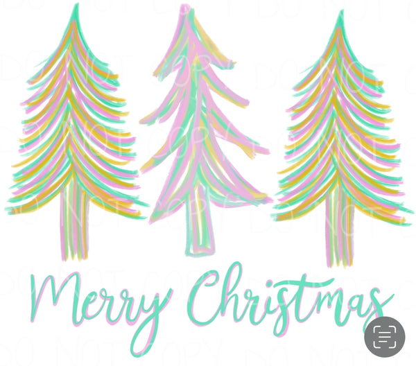 Merry Christmas Pink Trees Transfer Sheet