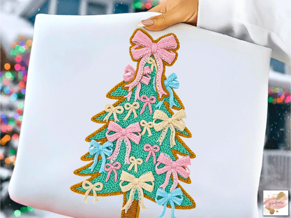 Bow Christmas Tree Faux Yarn Transfer Sheet