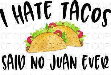I Hate Tacos Said No Juan Ever Transfer Sheet