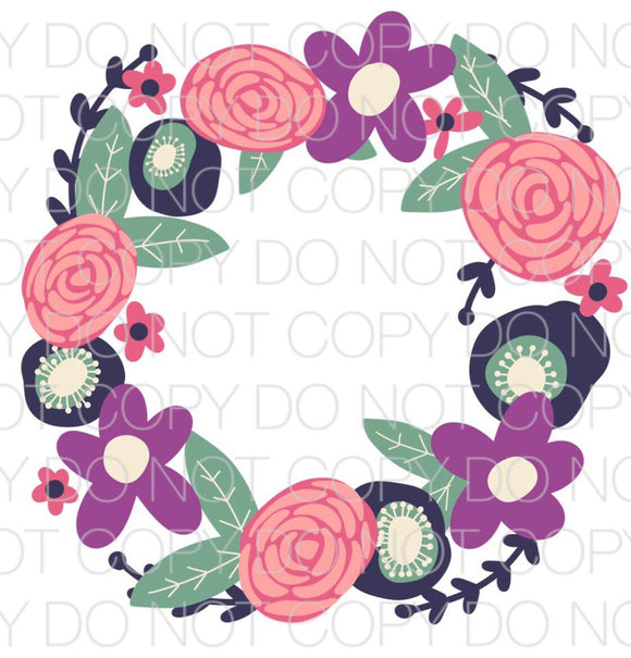 Floral Wreath Pink Purple Transfer Sheet