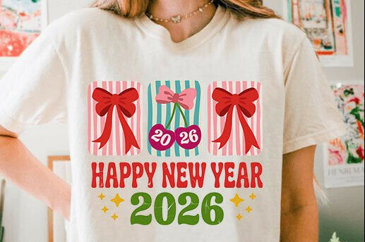 Happy New Year 2026 Bows Transfer Sheet