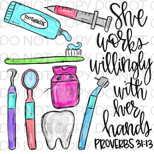 She Works Willingly With Her Hands Dentist Dental Assistant Transfer Sheet
