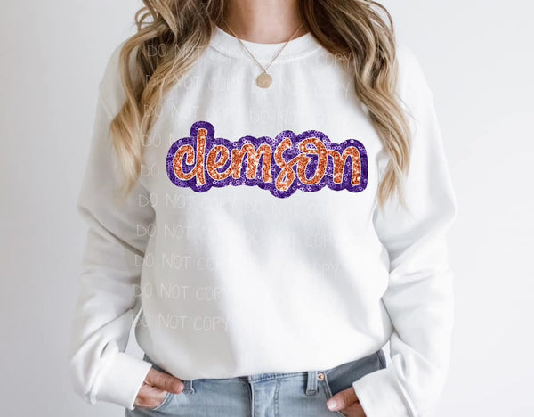 Clemson Orange and Purple Faux Sequin and Glitter Transfer Sheet