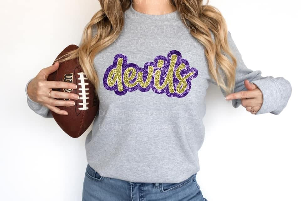 Devils Purple Gold Faux Sequin And Glitter Transfer Sheet