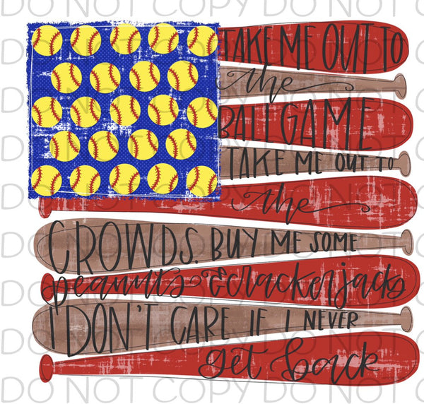 Take Me Out To The Ballgame Softball Transfer Sheet