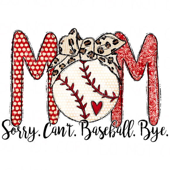 Sorry Can’t Baseball Bye Mom Transfer Sheet
