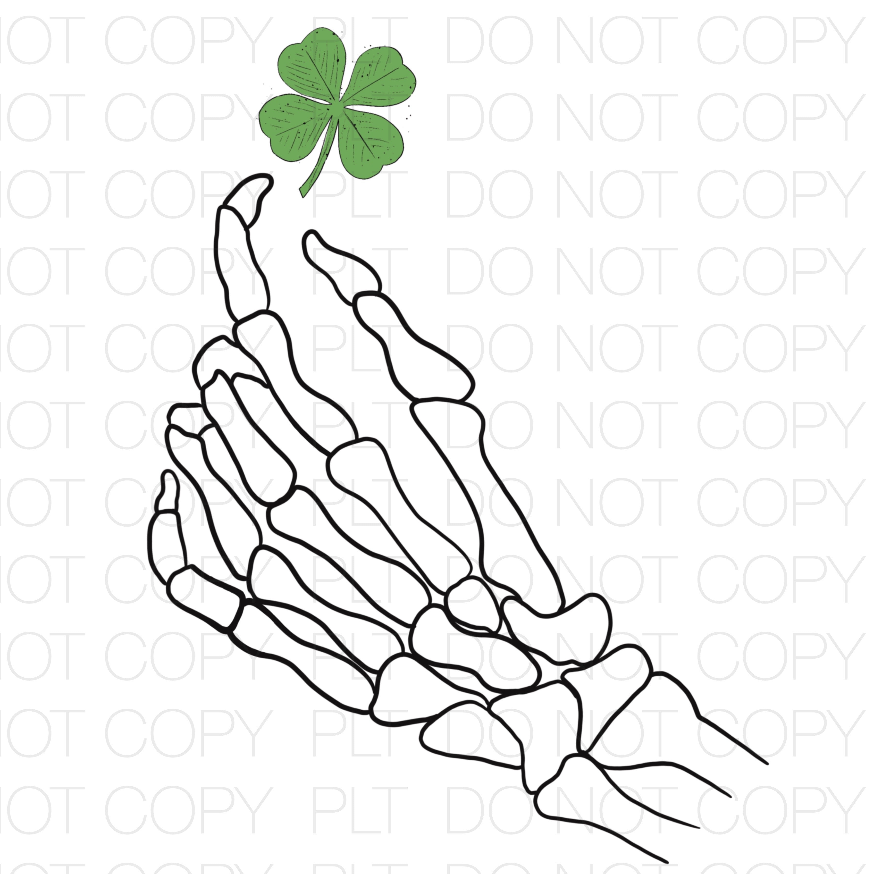 Four Leaf Clover Skeleton Hand Transfer Sheet