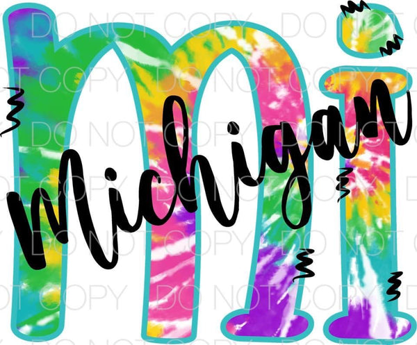 Tie Dye Michigan MI Transfer Sheet