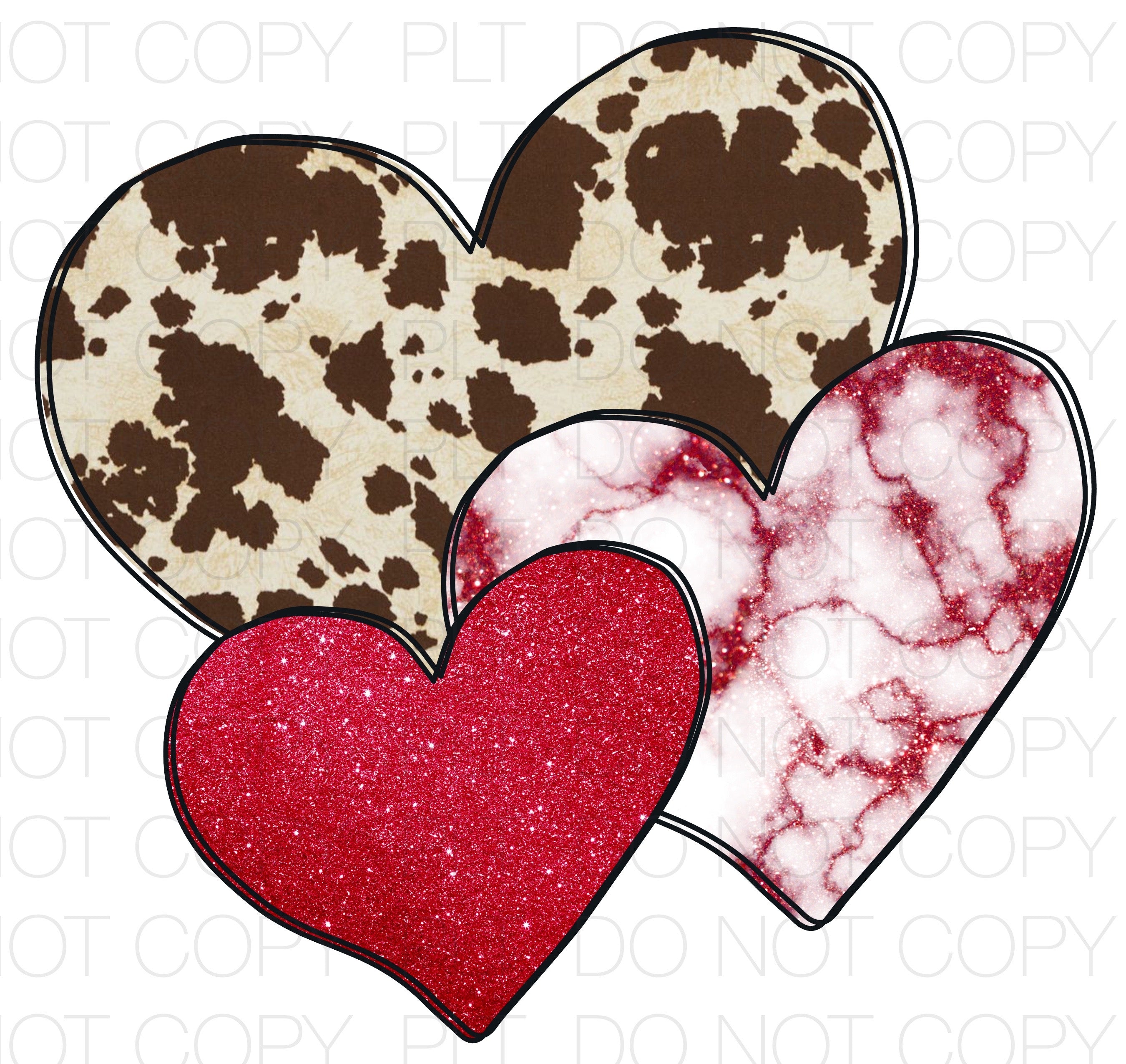 Heart Trio Brown Cow Transfer Sheet