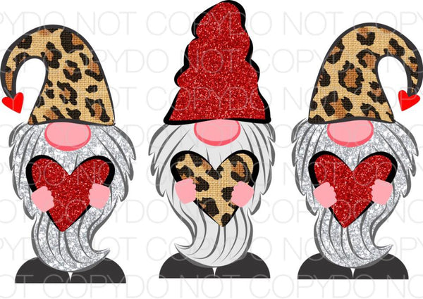 Valentine Gnomes Leopard Red Glitter Transfer Sheet