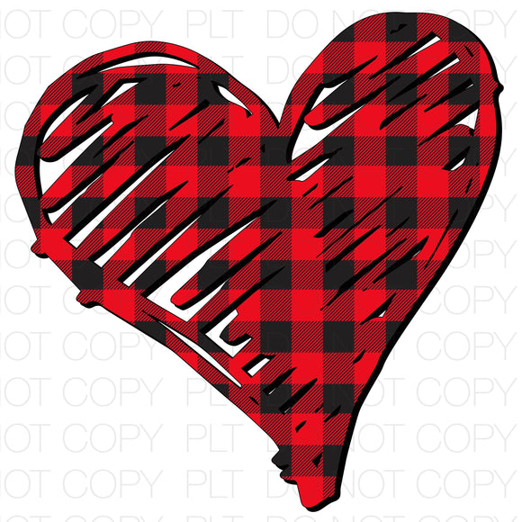 Scribble Heart Buffalo Plaid Transfer Sheet