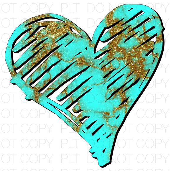 Scribble Heart Teal Gold Transfer Sheet