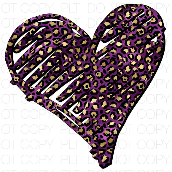 Scribble Heart Purple Leopard Transfer Sheet