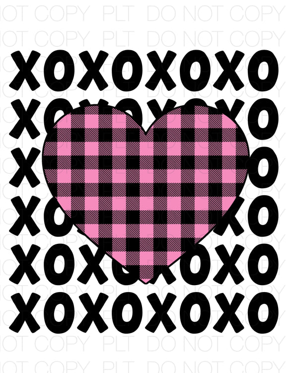 XOXOXO Pink Plaid Heart Transfer Sheet