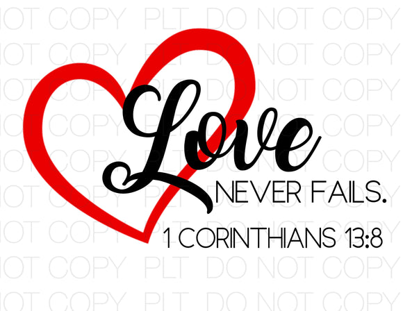 Love Never Fails 1 Cor 138 Transfer Sheet
