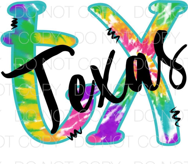 Tie Dye Texas TX Transfer Sheet