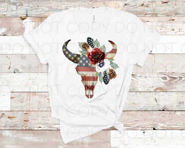 American Flag Bull Skull Transfer Sheet