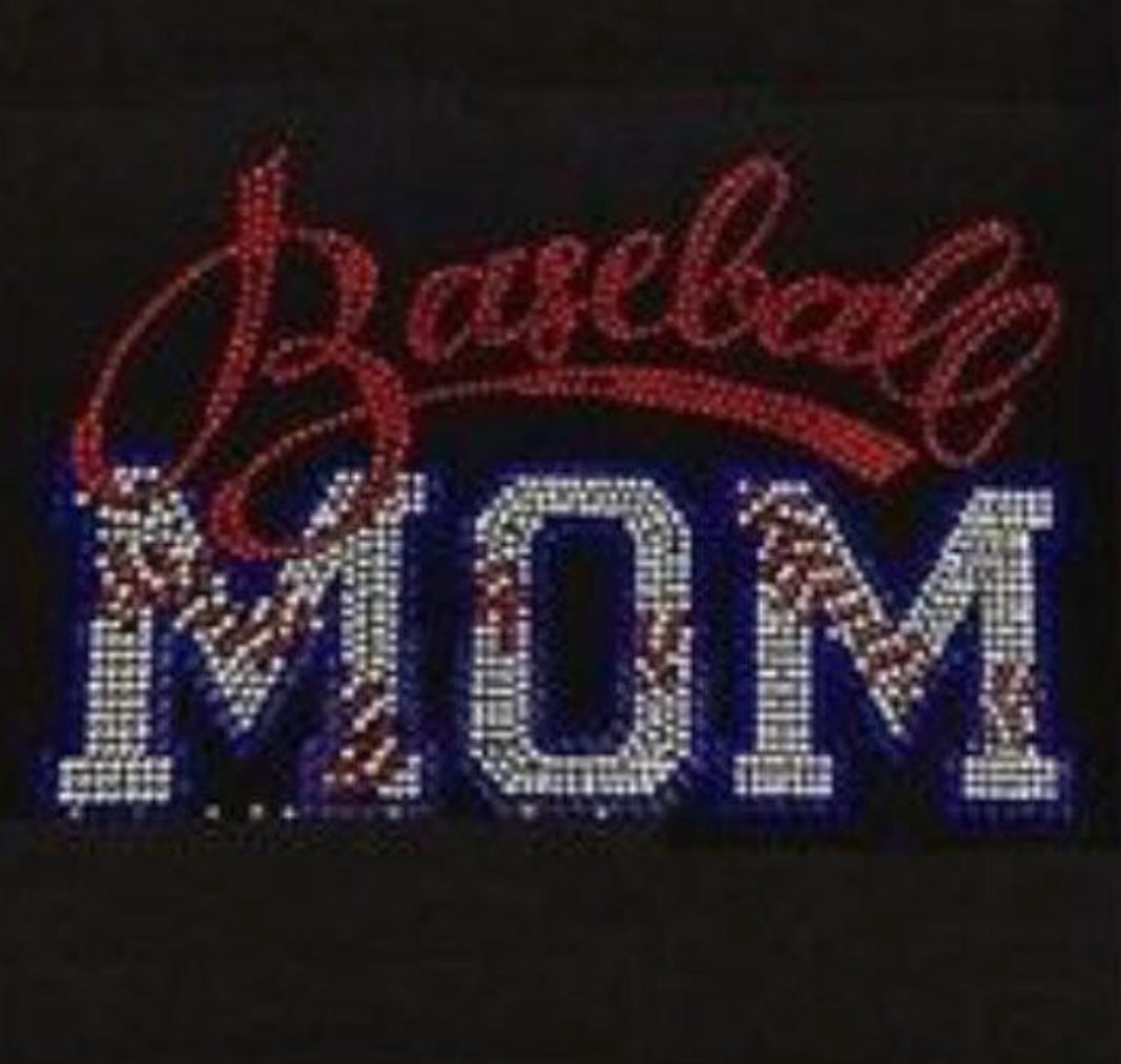 Baseball Mom 10.25"x6.58" Rhinestone Iron On Transfer