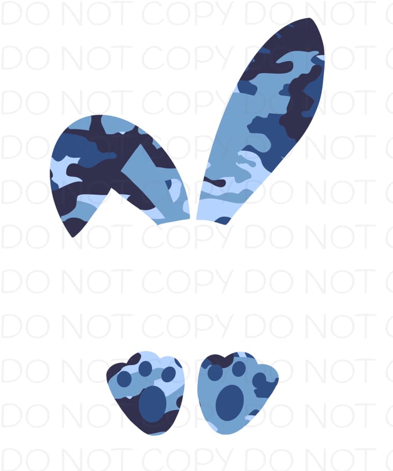 Blue Camo Monogram Bunny- HTV Transfer