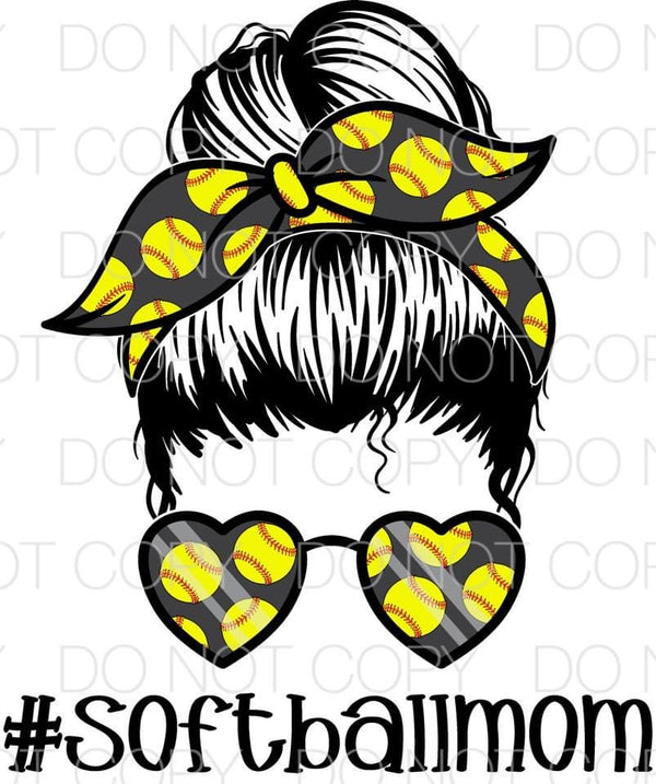 Softball Mom Messy Bun Transfer Sheet